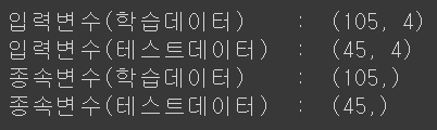 print('입력변수(테스트데이터) : ', X_test.shape)