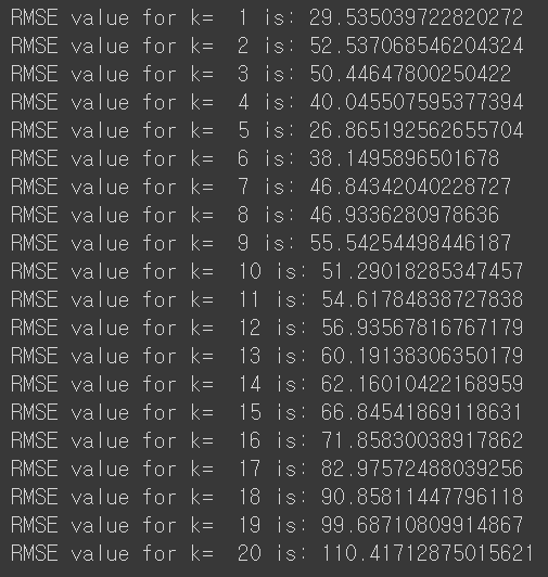 실제로 RMSE를 통해 성능을 평가하고 최적의 k를 구해보도록 하겠습니다.