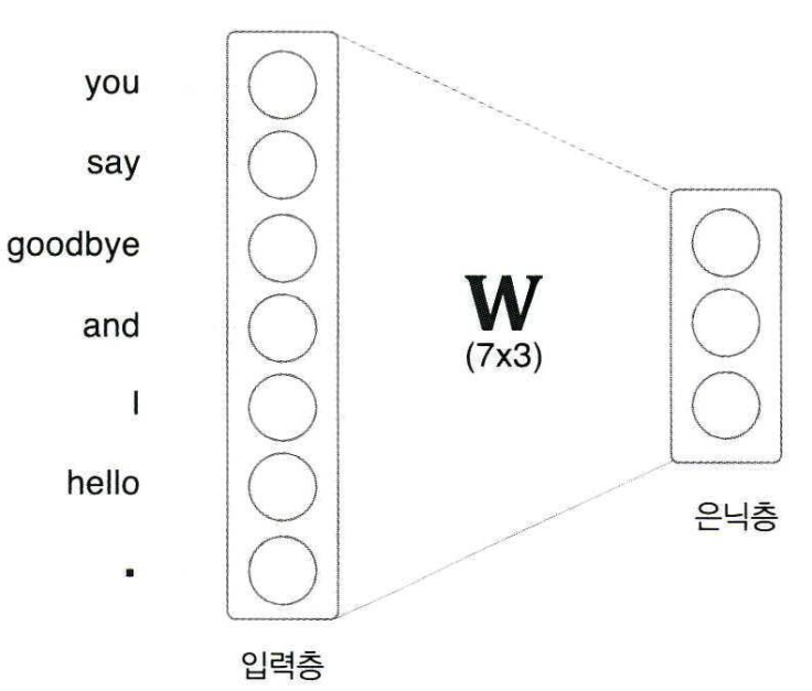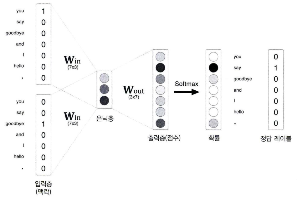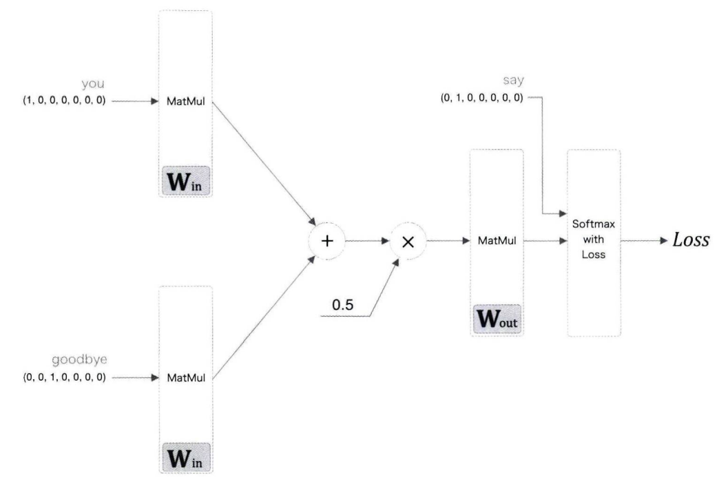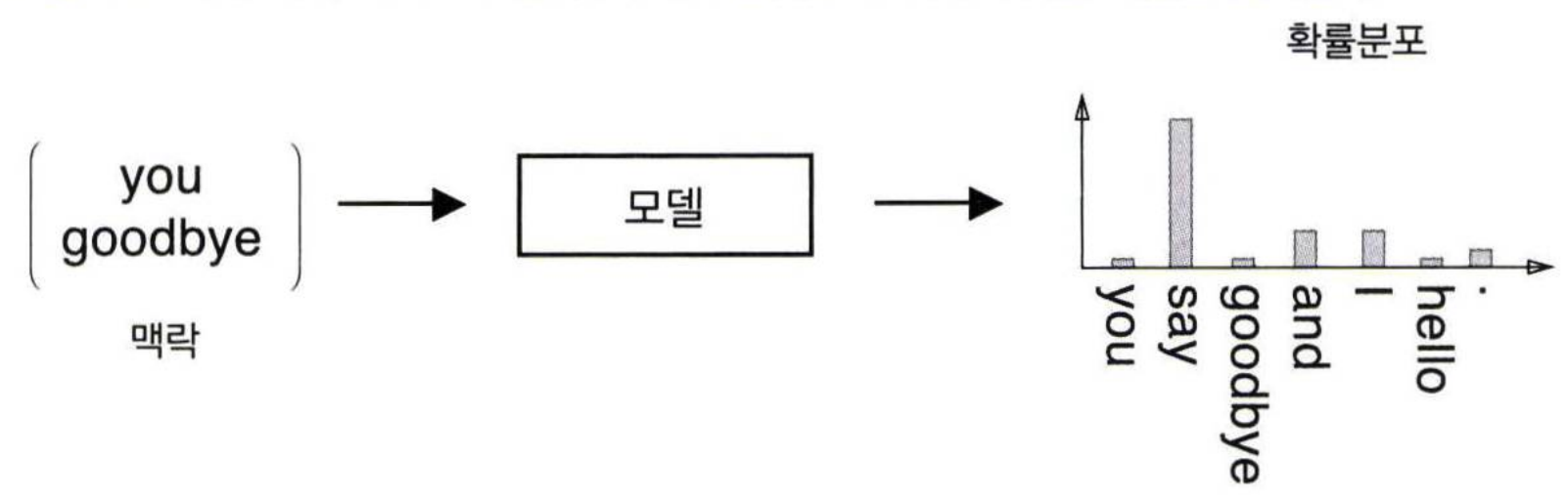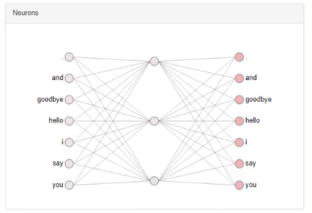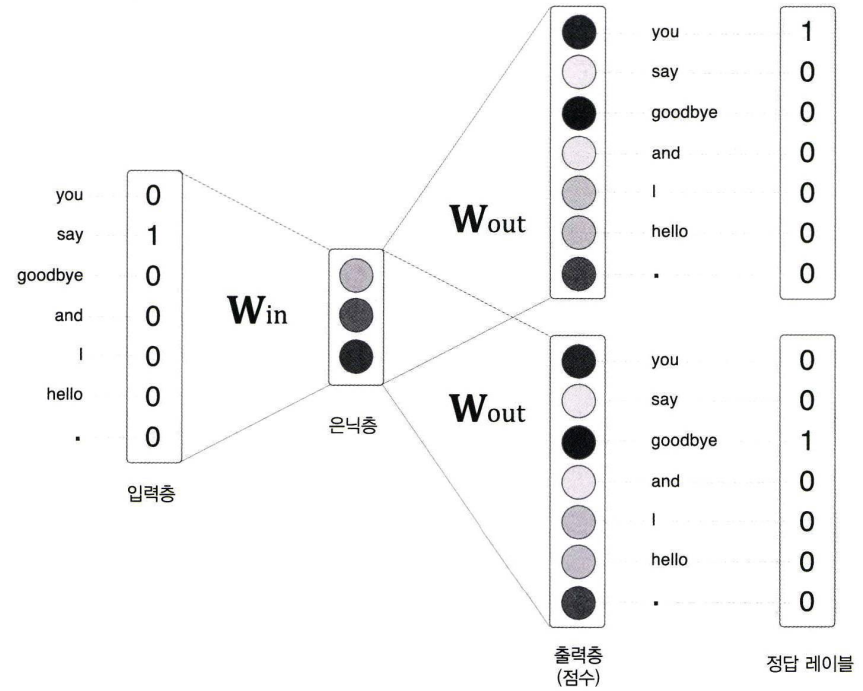 예를 들어, you, goodbye를 통해 say를 예측하도록 만든 모델입니다.