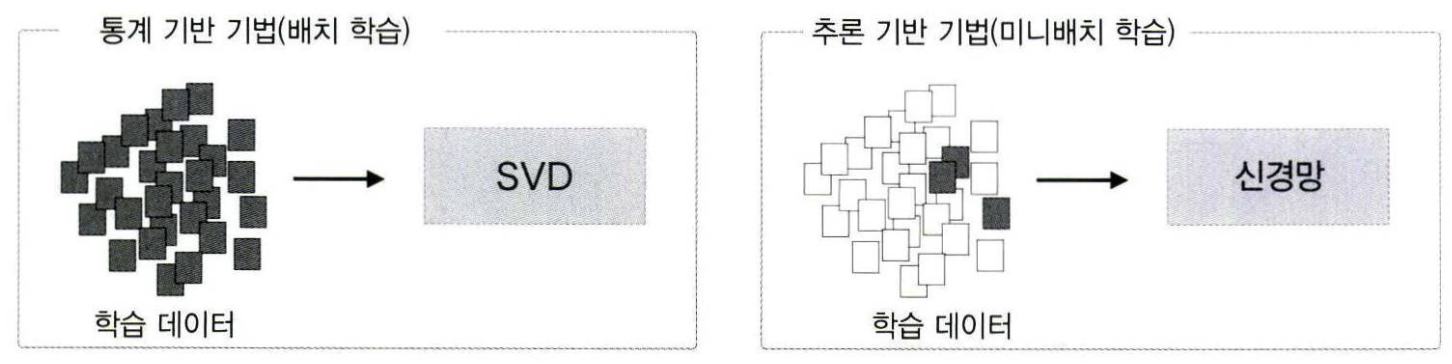 최근에 GPU의 발전으로 인해 미니배치 학습의 효율이 올라가면서 추론 기반 기법이 큰 호응을 얻고 있습니다.