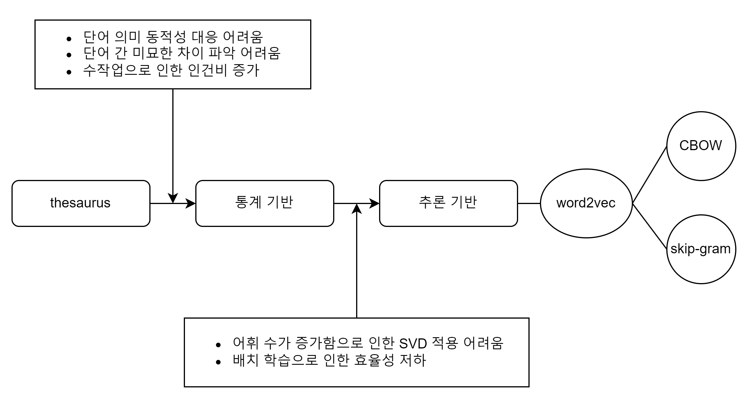 그리고 통계 기반 기법은 전체 데이터를 이용해서 한 번의 분석을 하게 됩니다. 그래서 중간에 단어가 추가돼서 다시 분석해야 될 때 전체를 다시 실행시켜야 된다는 단점도 존재합니다.