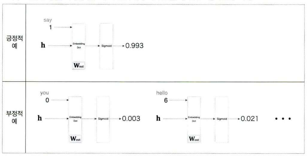 이러한 계산 방법이 네거티브 샘플링(negative sampling)입니다.