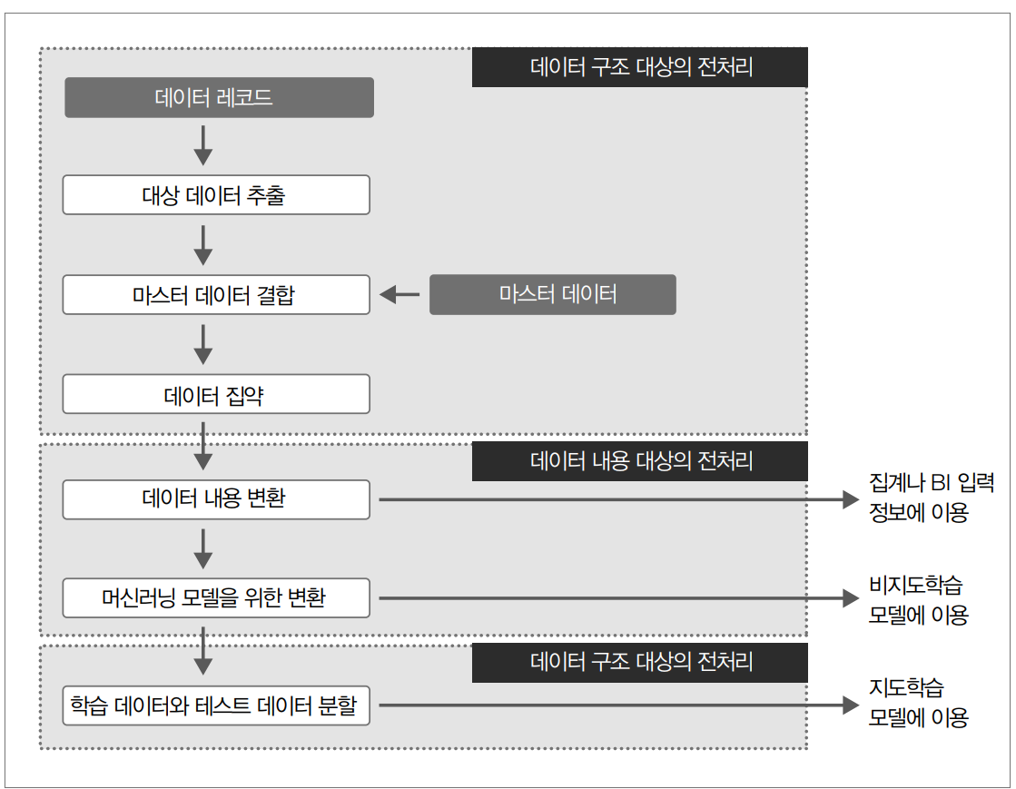 데이터 구조 대상의 전처리는 여러 행에 걸쳐 데이터 전체를 아우르는 처리입니다.