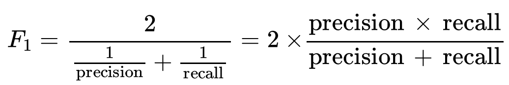 이는 아래와 같이 정밀도와 재현율의 조화 평균으로 계산됩니다.