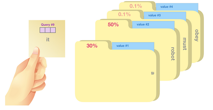 해당 용어들은 정보 검색(Information Retrieval) 분야에서 가져온 용어로써, 우리가 입력하는 검색어를 쿼리, 쿼리와 비교하기 위해 데이터베이스에 존재하는 문서의 특징을 키, 키와 연결된 우리가 원하는 문서를 값이라고 합니다.