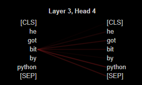 이미지에서 볼 수 있듯이 같은 'python'이라도 문장 내에서 서로 다른 단어와 강한 상관관계를 나타내는 것을 알 수 있습니다.