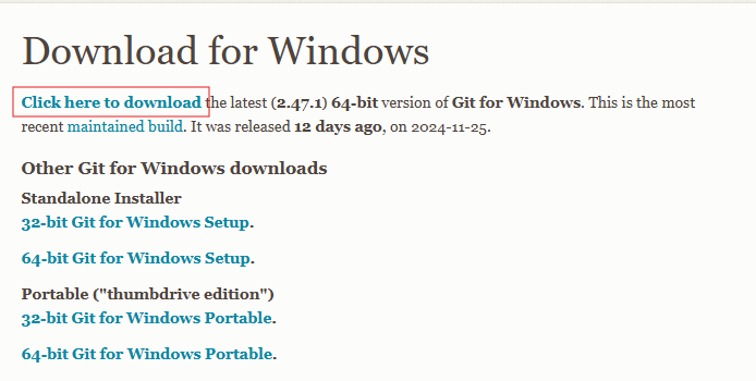 1) 깃 홈페이지에서 윈도우 파일 다운로드 페이지에 접속