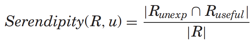 Herlocker et al. [2004]은 사용자가 발견할거 같진 않지만 놀랍도록 흥미로운 것이라고 비공식적으로 정의 내렸다.