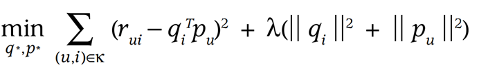 사용자와 아이템 행렬을 이용하여 원래의 데이터를 잘 예측하기 위해서 optimize 작업이 필요하다. 이때 실제 평점과 예측 평점과의 차이를 이용해서 학습을 하게 된다.(L2 norm)