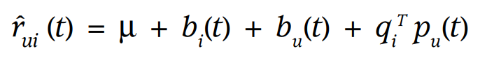 이때, 아이템, 사용자, 사용자 요인 편향을 시간적 함수로 고려한다