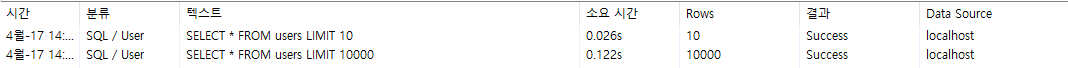 실습: 조회 데이터 개수에 따른 성능 차이