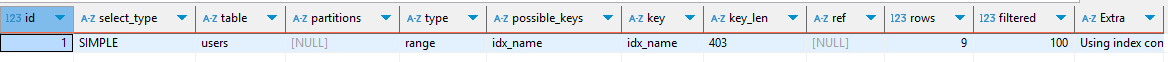 MySQL 옵티마이저는 정렬 기준인 name에 인덱스가 있더라도, 전체 100만 건을 모두 정렬해야 하는 상황에서는 굳이 인덱스를 통해 테이블을 다시 조회하는 것보다 그냥 전체 테이블을 스캔해서 정렬하는 게 더 빠르다고 본 것입니다.