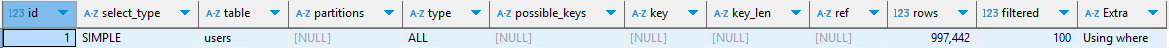 → type = ALL, 즉 풀 테이블 스캔이 발생함