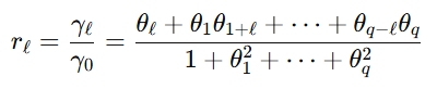 ※ l > q이면, 자기공분산이 0이 되므로 자기상관성도 0이 됩니다.