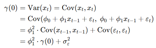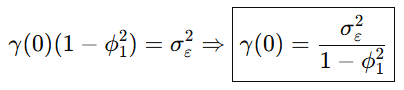 이때, AR 모델의 분산은 다음과 같이 유도됩니다.