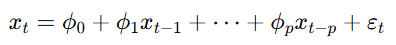 - AR(p) (일반화: 현재의 값이 p시점 이전의 값까지와 연관됨)