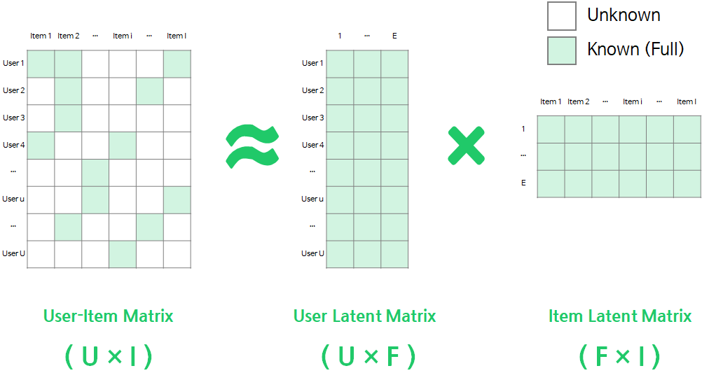 대표적으로는 MF(matrix factorization) 모델이 있습니다. 이는 사용자-아이템 행렬을 두개의 행렬로 분리하고 다시 행렬 곱으로 사용자의 평점을 예측하는 방식으로써 기존 CF가 지니고 있는 data sparsity를 완화시킬 수 있다는 장점이 있습니다.